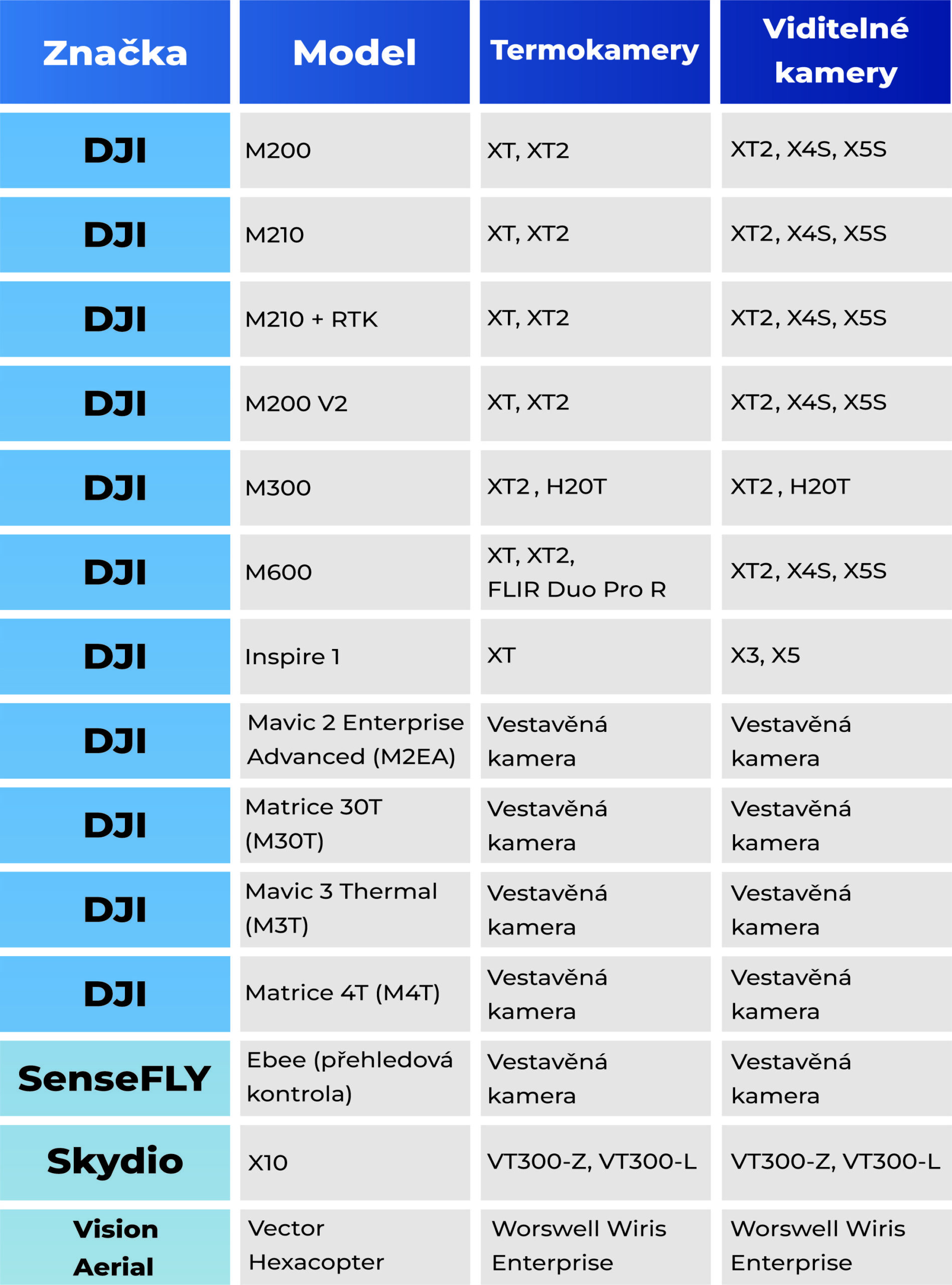 Welche Drohnen und Kameras werden für luftgestützte Inspektionen unterstützt?